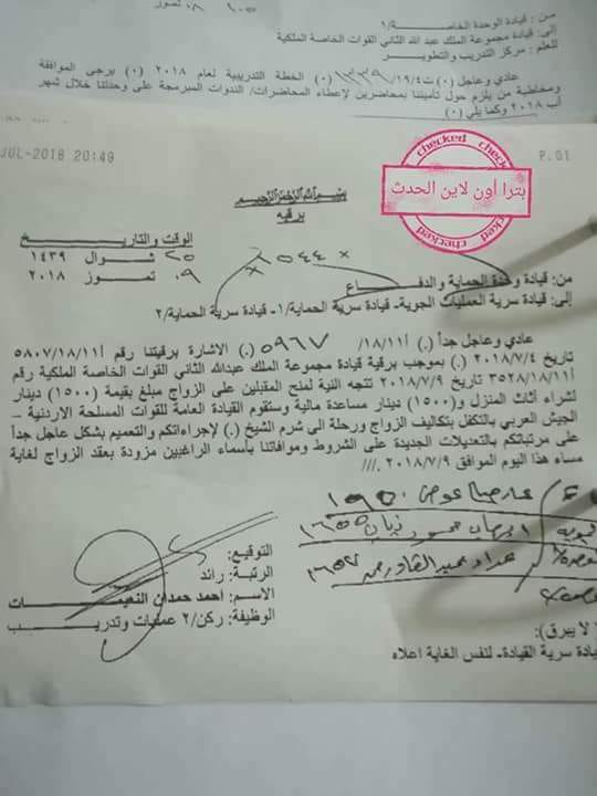 وثيقة مبالغ مالية مجزية للمقبلين على الزواج من منتسبي الجيش أردنيات زاد الاردن الاخباري أخبار الأردن