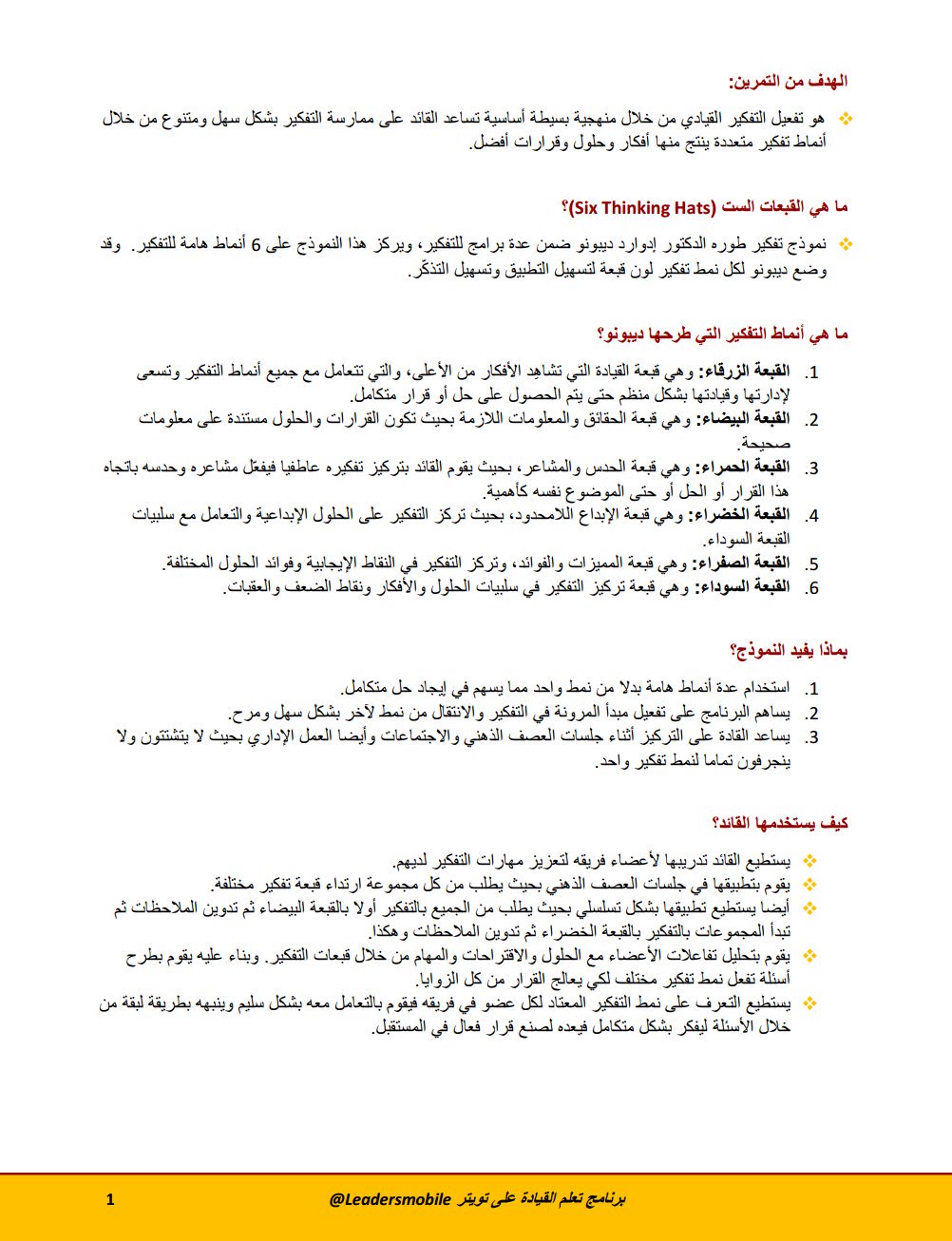 ا لــقــيـ ـا د ة ا لــتــر بــو يـ ـة Sur Twitter فن القيادة تمرين القبعات الست للقادة Https T Co S0lal0rchc Tdarab المجتمع الوظيفي عبر Adnan3li