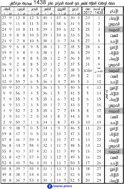 موقع الشريف الإدريسي المغربي لنصرة أهل بيت رسول ألله صلى الله عليه و آله في العالم مواقيت الصلاة في شهر ذو الحجة 1438 هجرية بمدينة مراكش و الصلاة في تلك المساجد