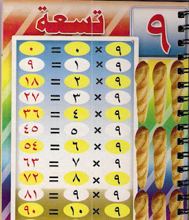 الصفحة الالكترونية للصف الثالث ثاني جدول الضرب للعدد 9