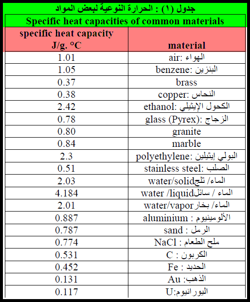 الحرارة النوعية والسعة الحرارية مسائل محلولة تعرف على علم الكيمياء