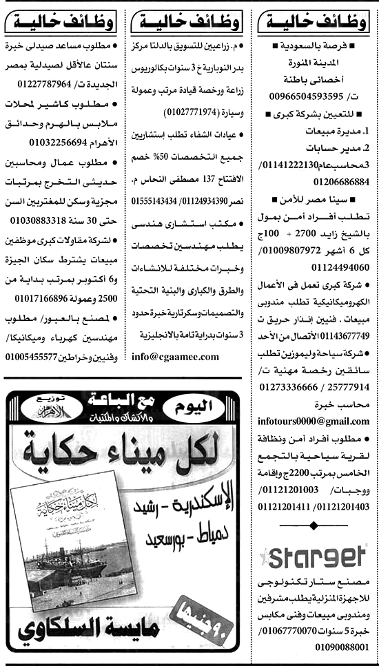 الصفحة الرسمية لبريد الجمعة بجريدة الأهرام بقلم الكاتب الصحفى أحمد البرى مدير تحرير الأهرام ورئيس قسم بريد. زوارنا الكرام ننشر لكم وظائف الاهرام 19 6 2020 وظائف جريدة الاهرام الجمعة ضمن وظائف اليوم والتي نحرص ضمن علي توفر وظائف خالية للشباب للمساهمة في توفير مصدر رزق مناسب وتعد جريدة الأهرام من أهم مصادر الوظائف الإسبوعية. مطعم مأكولات بحرية يطلب كول سنتر بنات ومديرين وكباتن وويترات وكاشير ارسال الـ cv علي واتساب 01065659195 شركة وجدى مؤمن للصناعات النسيجية تعلن عن حاجتها. وكيل النواب لـ بوابة الأهرام.