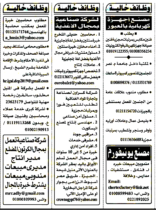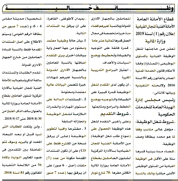 وظائف جريدة الاهرام الاسبوعي الجمعة الموافق 6 9 2019 6 سبتمبر 2019