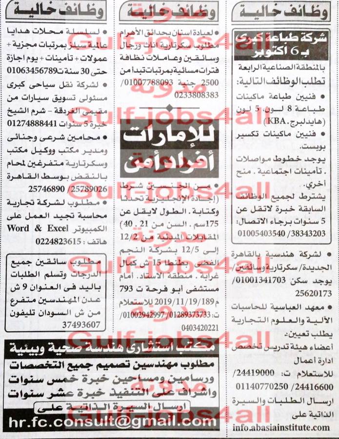 وظائف الاهرام الجمعة 11 اكتوبر 2019 الاهرام الاسبوعي 11 10 2019