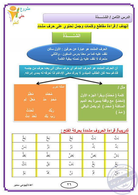 شرح الحروف المشددة أوراق عمل وتدريبات عليها تأسيس