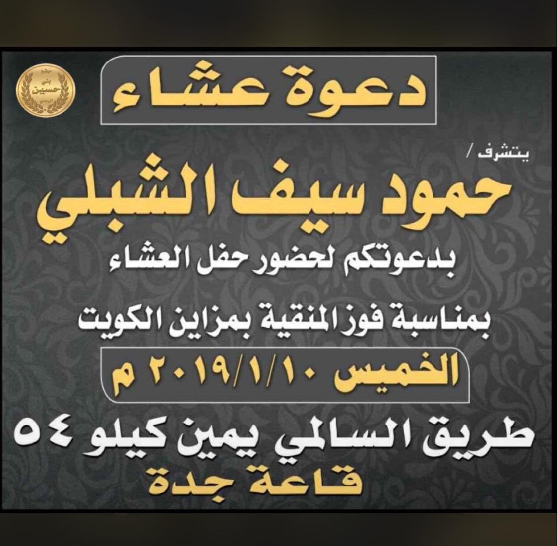 فهد علي الشبلي On Twitter حياكم الله على العشاء يوم الخميس هلا ومرحبا بالجميع الظفير الشبلي الحسيني