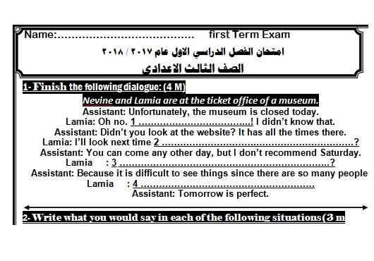 امتحان لغة انجليزية أول ثلاث وحدات وفصل قصة للصف الثالث الإعدادي ترم ثاني 2018 مستر محمد